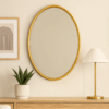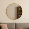 تتميز هذه المرآة الجدارية المزخرفة بتصميم عصري متموج بإطار ذهبي رفيع يضفي عليها لمسة من الأناقة والفخامة.