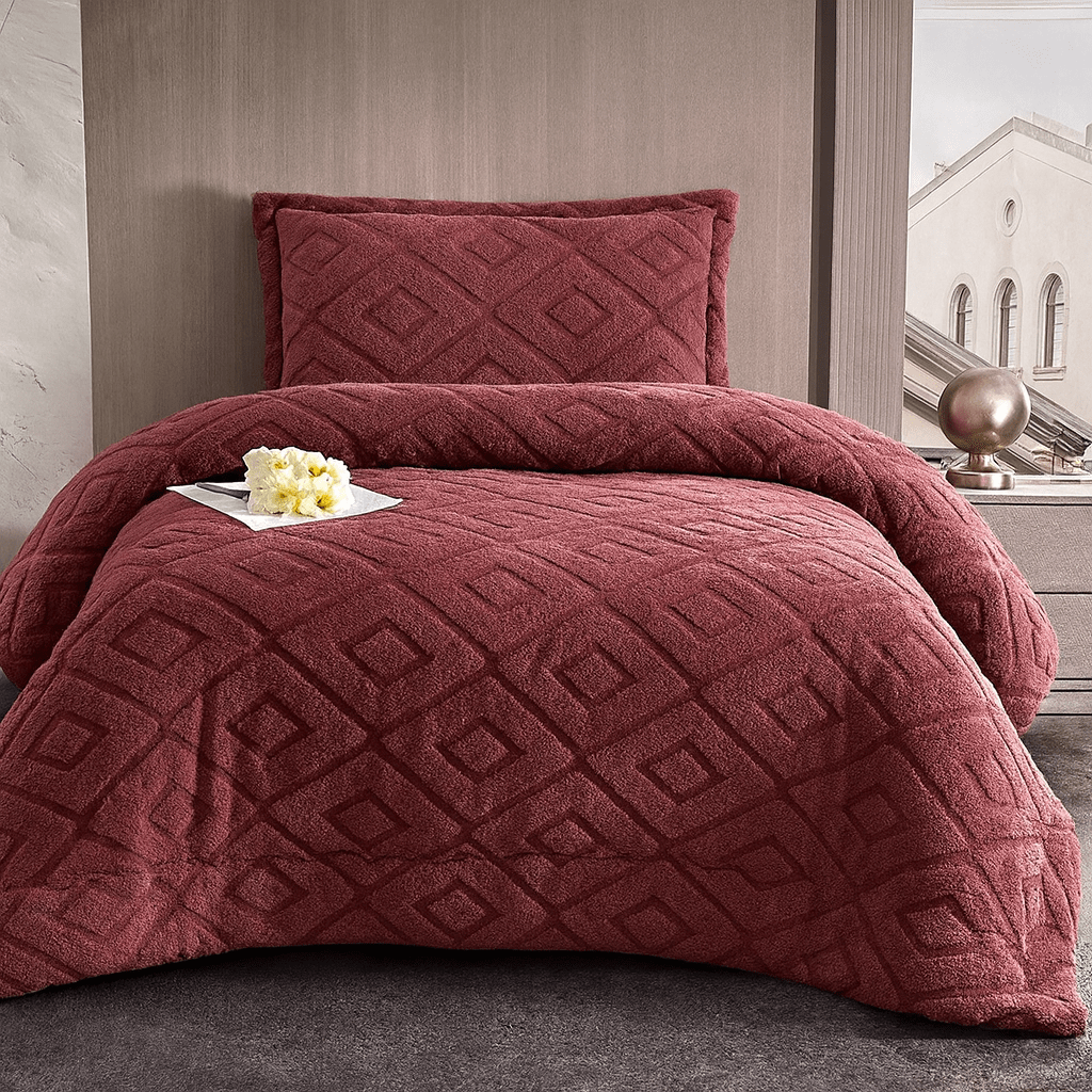 Define your room with this comforter set that delivers a stunning look and a cozy feel that sets a warm tone for the winter, featuring an embossed pattern.