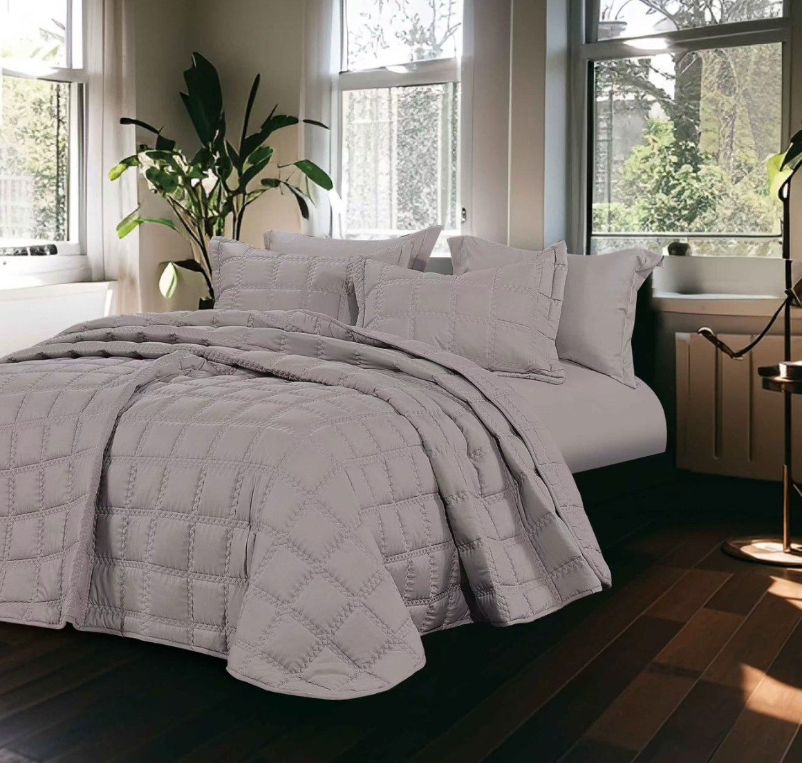 A minimalist and classic design on a solid hue is sure to set a dominant elegant tone your bedroom, with a lovely interlocked pattern; a classic choice for your bedroom.